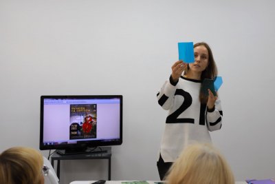 Падчас дэма-класа Паліна Корзун-Фомчанка падрабязна расказала пра працэс вырабу вітража Ціфані, прадэманстравала ўсе неабходныя для гэтага інструменты і матэрыялы.